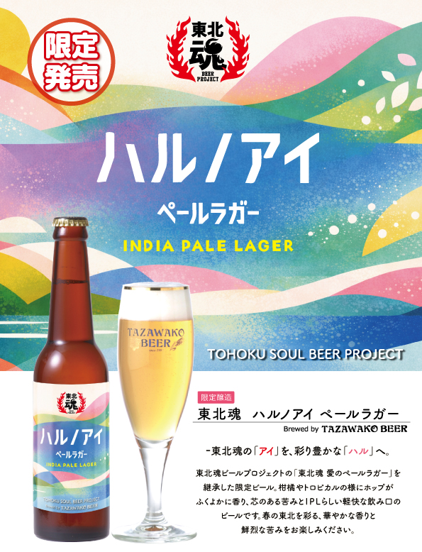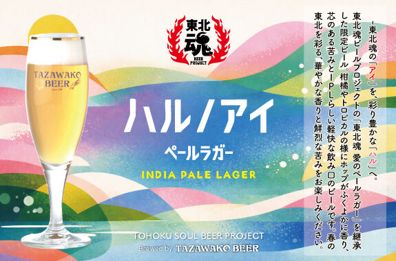 「東北とれたてホッププロジェクト」で醸造。 東北産とれたてホップと秋田県産あきたこまちを使用したペールエール。